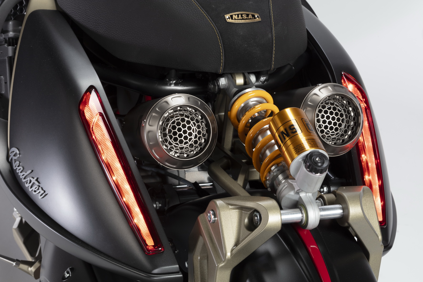 Από τις αλουμινένιες ακτινωτές ζάντες μέχρι το ορατό αλουμινένιο πλαίσιο κάτω από τη σέλα με μπρονζέ χρώμα, που θυμίζει τις πολλαπλές εισαγωγής κινητήρων αυτοκινήτων υψηλής απόδοσης, και την εξάτμιση Akrapovič με δύο τρύπες, που πλαισιώνει το κεντρικό πίσω αμορτισέρ, κάθε λεπτομέρεια έχει σμιλευτεί για να τραβήξει την προσοχή.