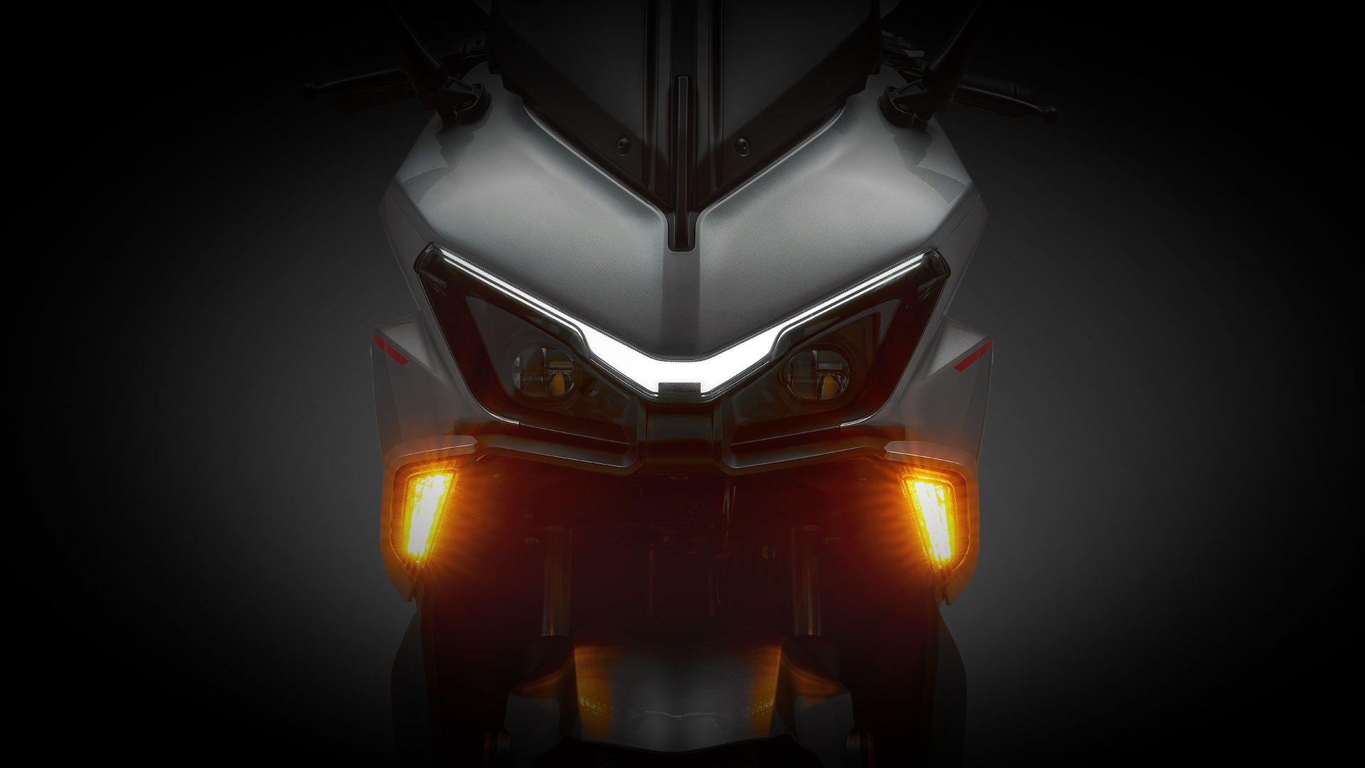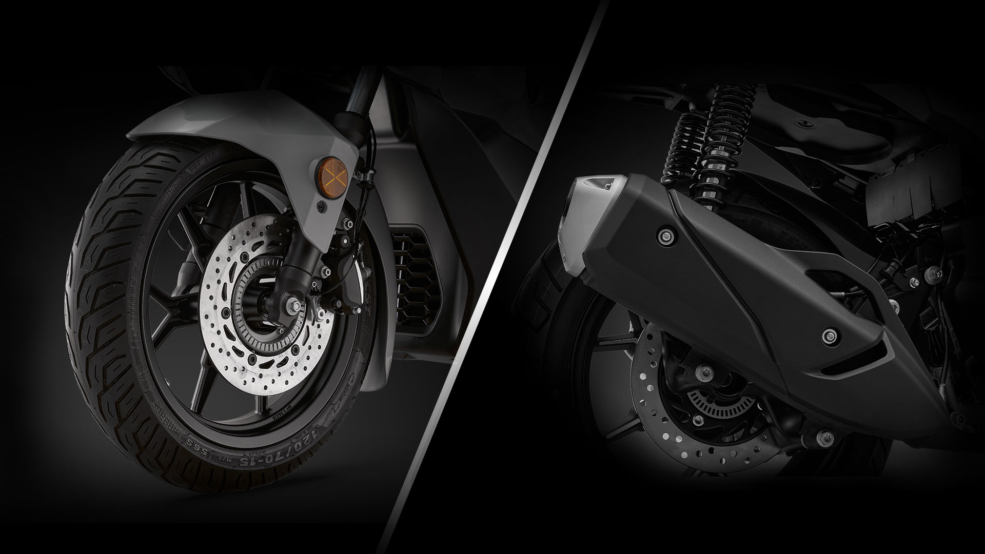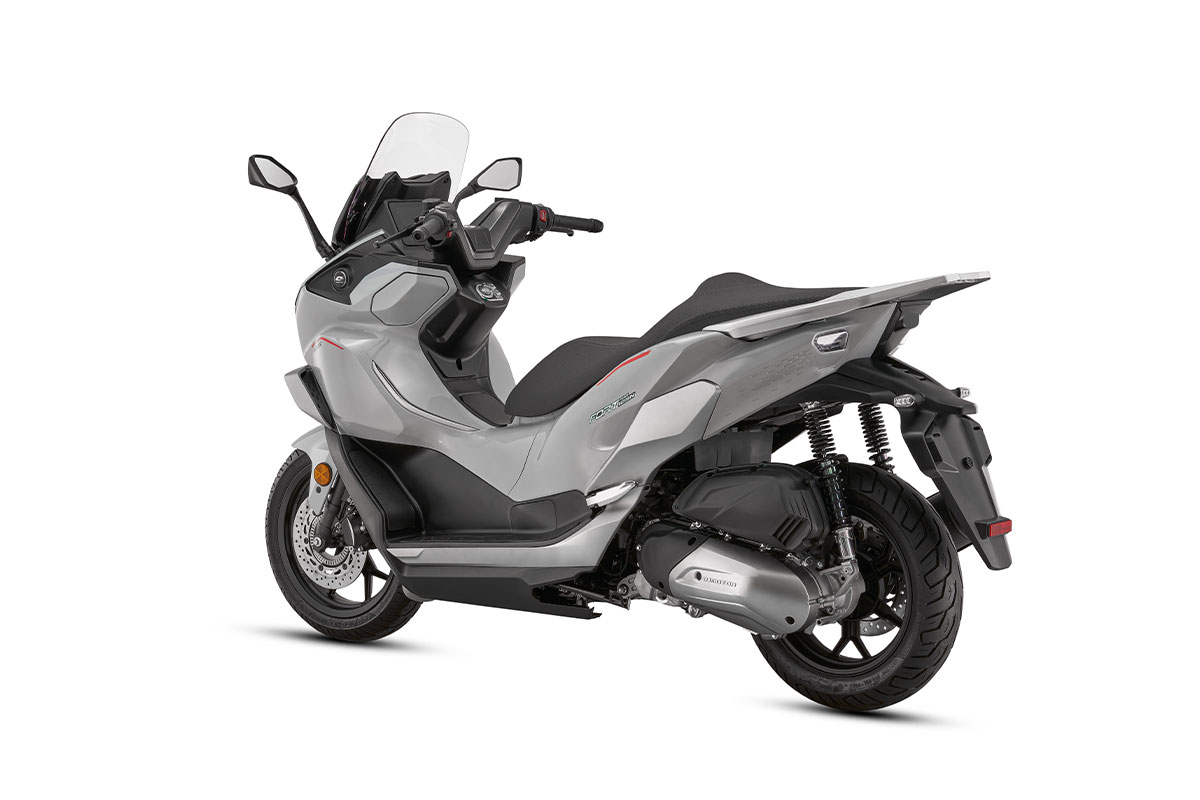 Τα φλας και τα alarm βρίσκονται χαμηλότερα στην ποδιά, ενώ στο πίσω μέρος δύο ξεχωριστά φωτιστικά σώματα ολοκληρώνουν τη δυναμική αισθητική του scooter.