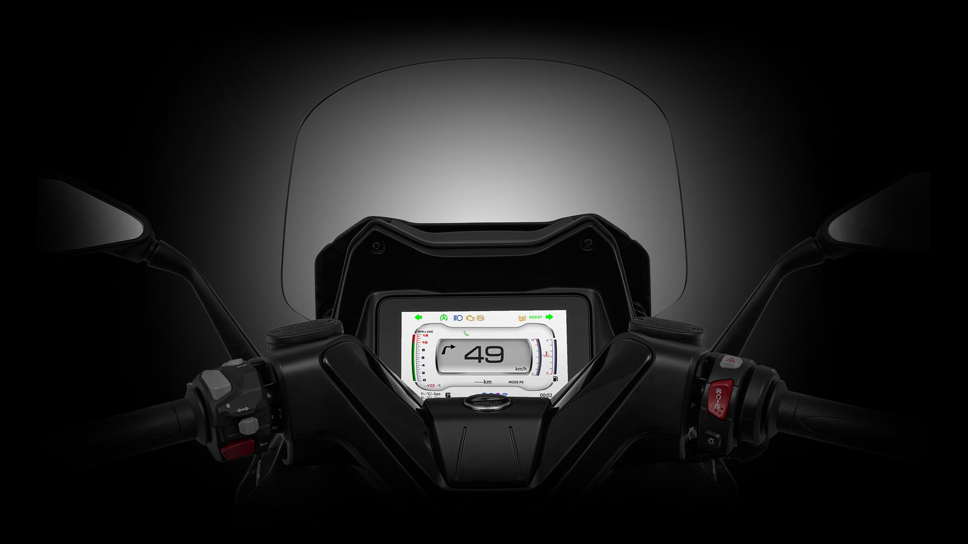 Στο κέντρο του cockpit δεσπόζει ο μεγάλος TFT πίνακας 7 ιντσών, με δύο διαφορετικά interfaces (street & sport), επιτρέποντας στον αναβάτη να επιλέγει τον τρόπο προβολής των ενδείξεων.