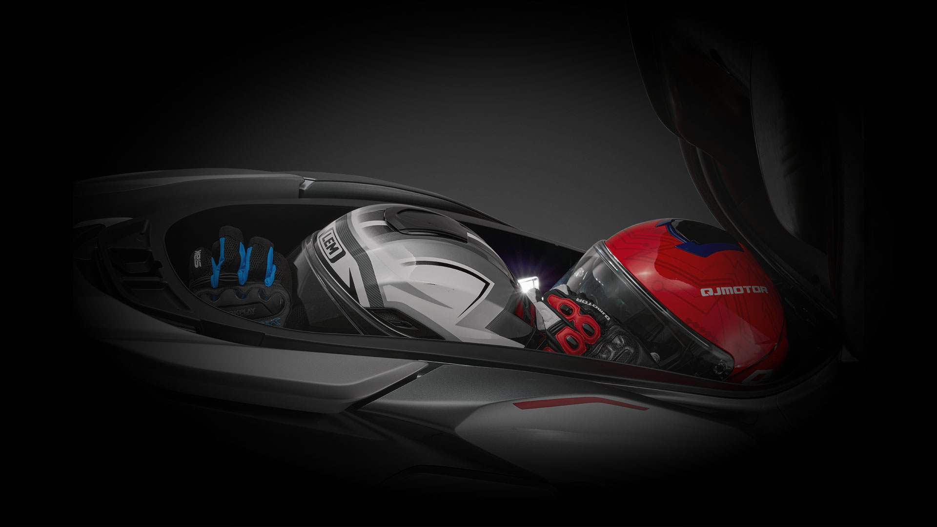 Κάτω από τη σέλα υπάρχει ένας φωτιζόμενος αποθηκευτικός χώρος που μπορεί να φιλοξενήσει δύο κράνη και διάφορα προσωπικά αντικείμενα, ενώ η εργοστασιακή σχάρα αποσκευών διευρύνει τις δυνατότητες μεταφοράς.