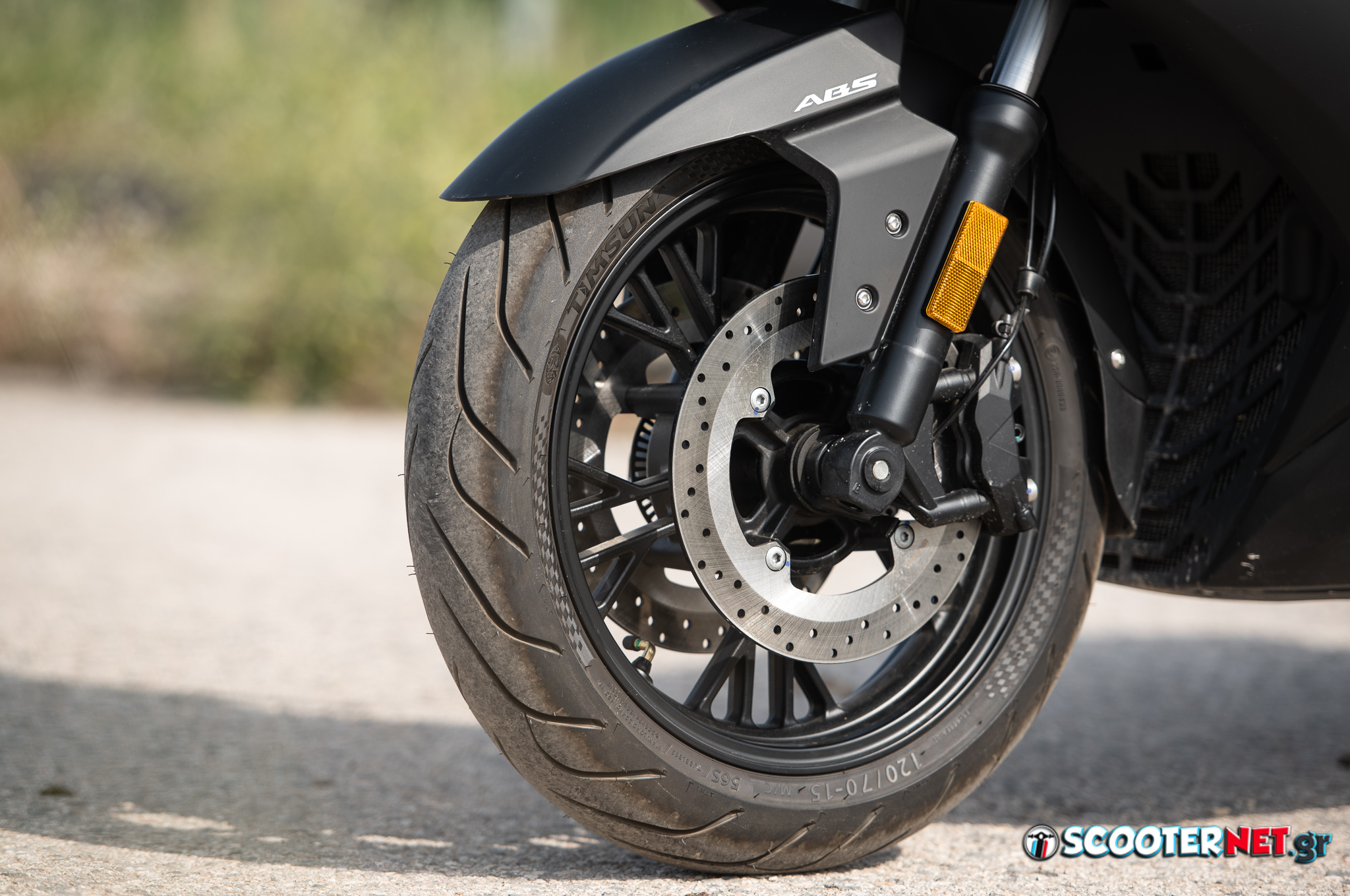 Οι χυτές αλουμινένιες ζάντες έχουν διάμετρο 15” μπροστά και 14” πίσω, με τα ελαστικά της Timsun να έχουν διαστάσεις 120/70 και 140/70 αντίστοιχα.