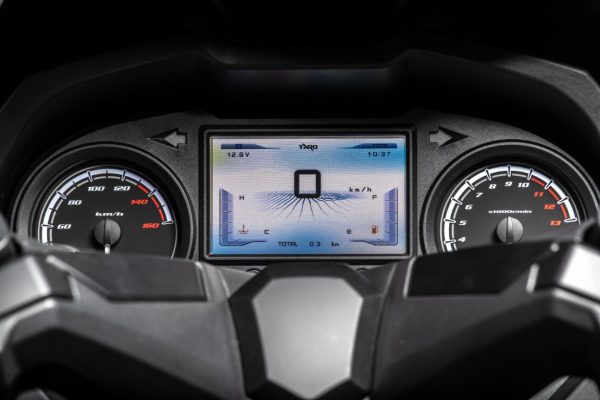 Ταυτόχρονα, το μικρό πλάτος των μόλις 786mm επιτρέπει στο Thrust 300 Explorer GT ABS+TCS, TFT να μην κολλάει μέσα στην κίνηση και να μπορεί άνετα να ελιχθεί ανάμεσα στα αυτοκίνητα.