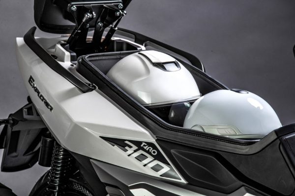 Η πρακτικότητα ενισχύεται από έναν ευρύχωρο αποθηκευτικό χώρο κάτω από τη σέλα, ο οποίος χωράει δύο κράνη και μικρά αντικείμενα, ενώ στην ποδιά υπάρχει και θύρα USB, για τη φόρτιση των ηλεκτρονικών συσκευών του αναβάτη.