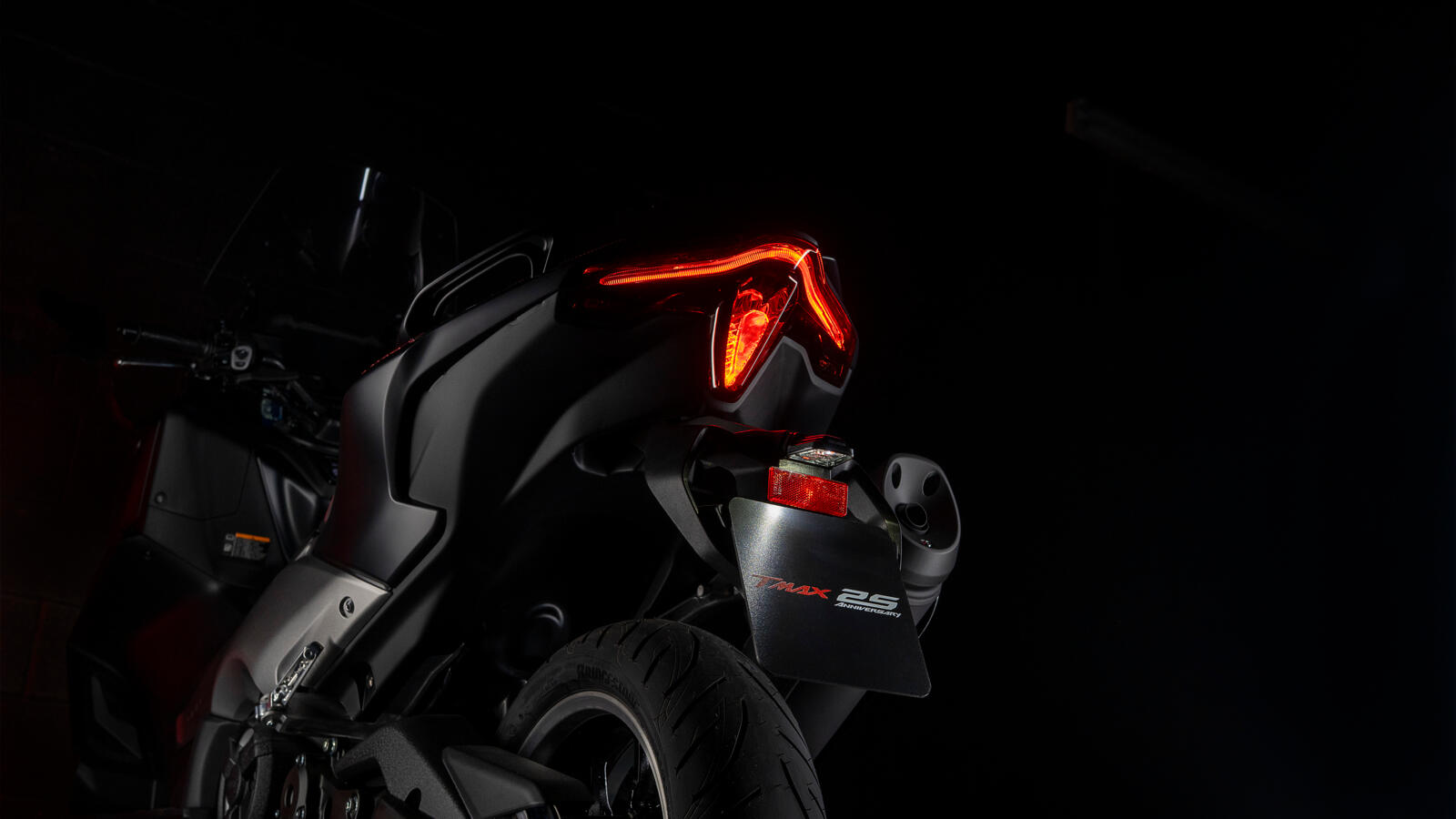 Εξοπλισμένο με μια σειρά από ειδικά χαρακτηριστικά, όπως κόκκινη σέλα με διπλή κόκκινη ραφή και συγκολλημένες ενώσεις, καθώς και σε έναν μοναδικό χρωματισμό Dark Gray Metallic με μπούμερανγκ σε Light Gray Metallic, ο οποίος αντλεί έμπνευση από το Black MAX Special Edition του 2006, το TMAX 25th Anniversary είναι ένα αποκλειστικό μοντέλο που τιμά τη διαχρονική επιτυχία αυτού του εκπληκτικού σχήματος.